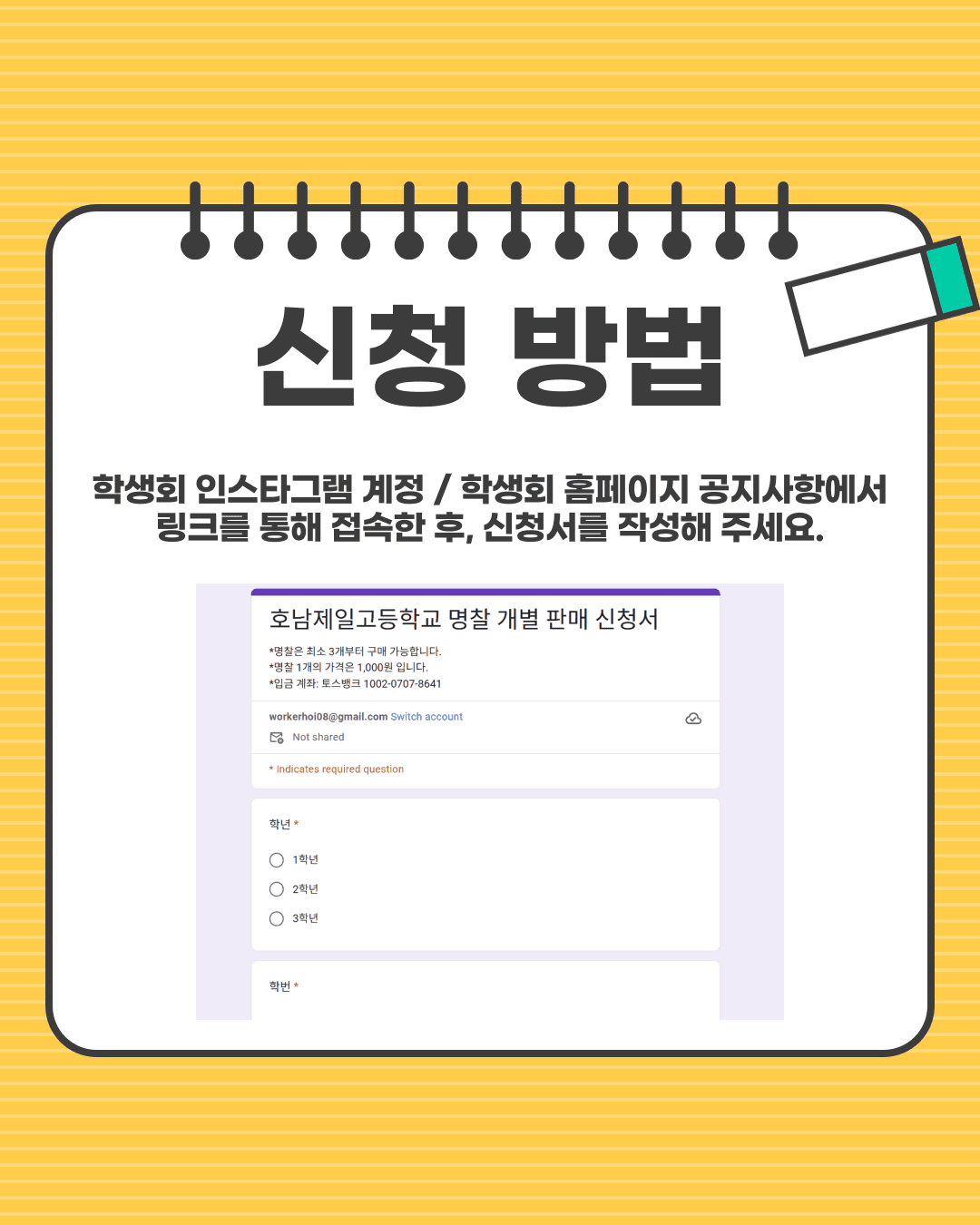 본 명찰 개별 판매 신청서 양식은 본 게시물과 같이 첨부하였으니 학생 여러분의 많은 관심 부탁드립니다.