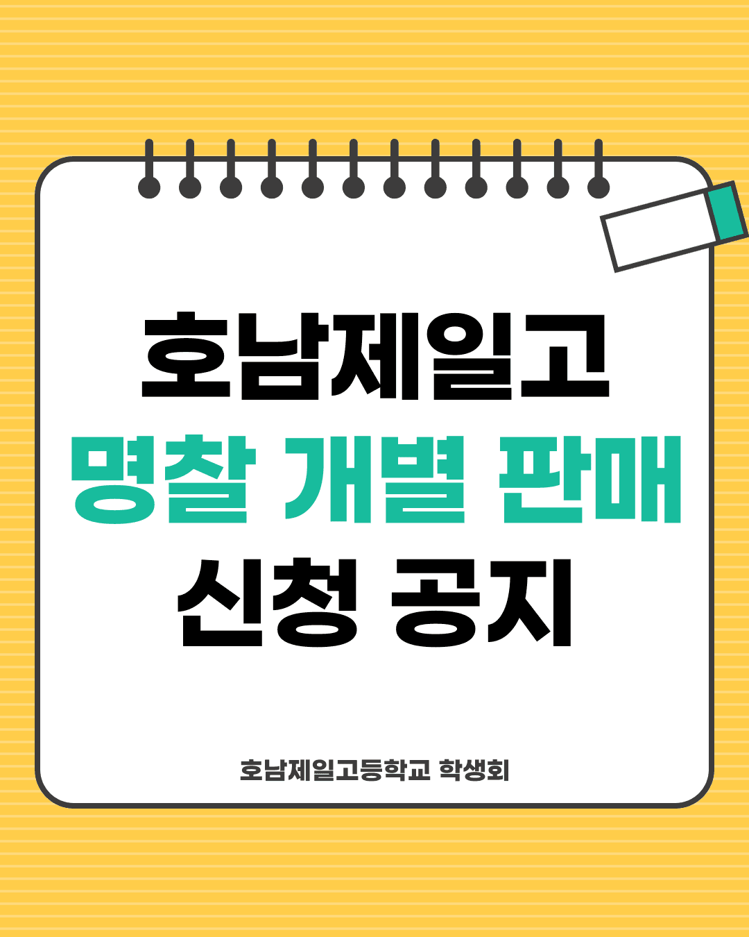 안녕하십니까, 호남제일고등학교 학생회 학업정보부입니다. 이번 학기부터 학생회에서는 명찰 개별 판매를 진행하고자 합니다. 정규 활동, 수업, 행사 등 다양한 상황에서 활용할 수 있는 명찰을 개인 단위로 추가적으로 구매하실 수 있습니다.