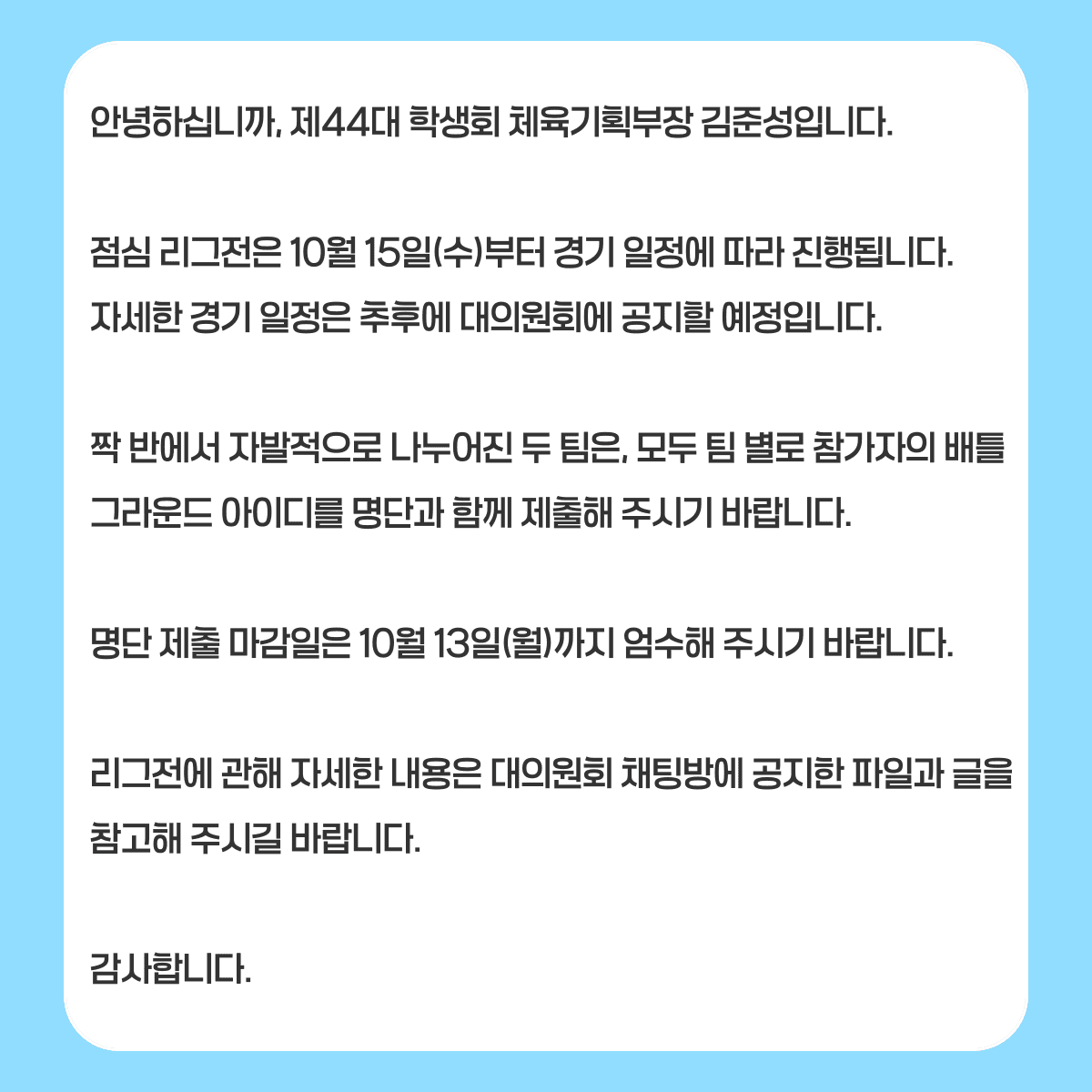 [251002. 리그전 상세 일정 안내]